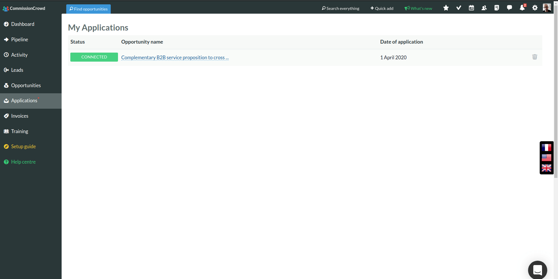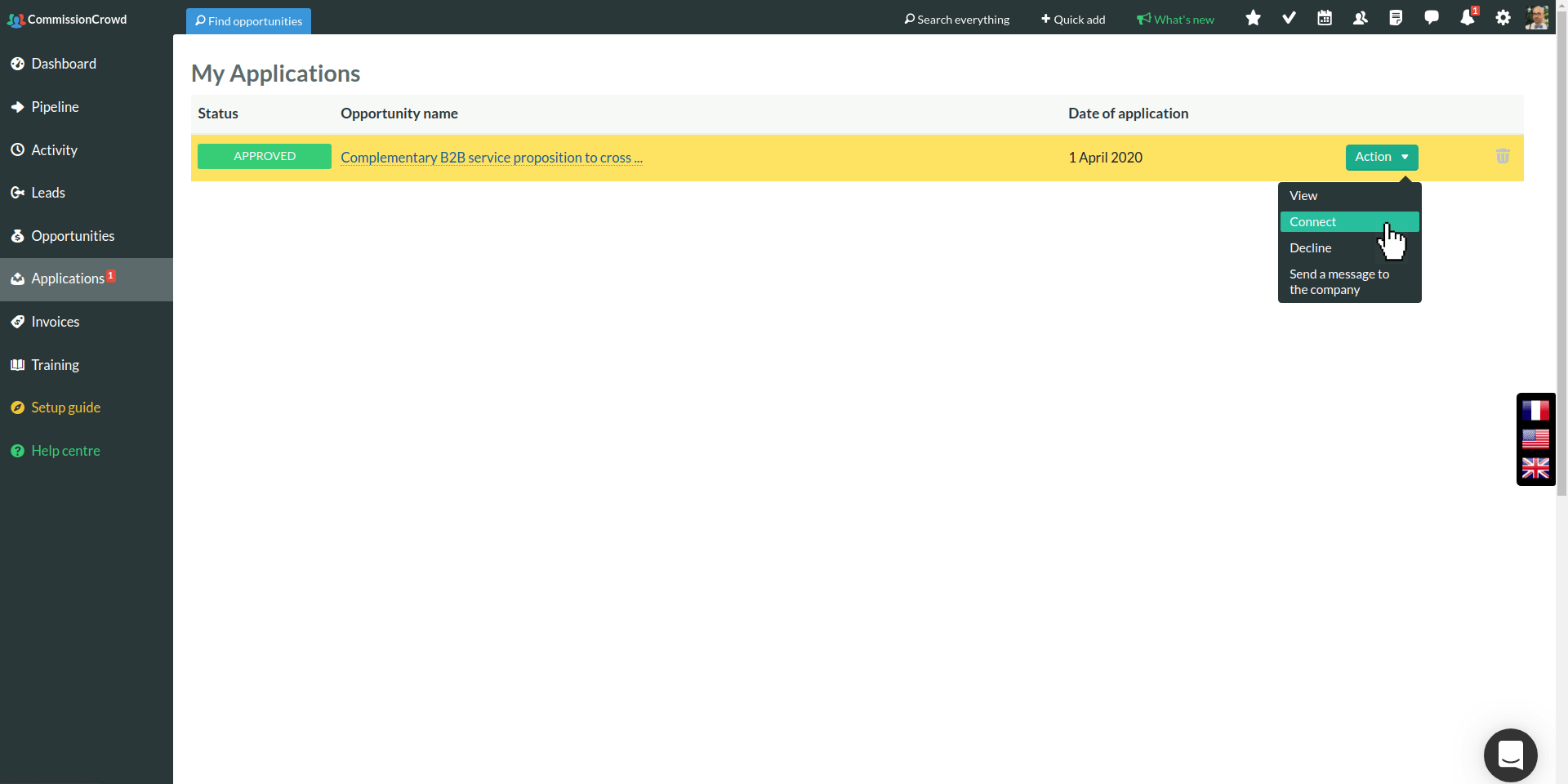 Fig.1. Connect to an opportunity when the company has approved your application