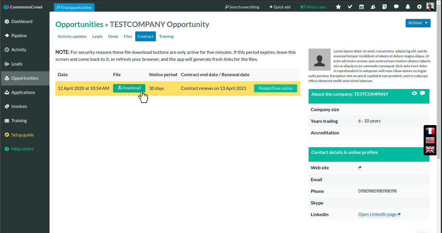Fig.9. Download the contract any time from your opportunity screen